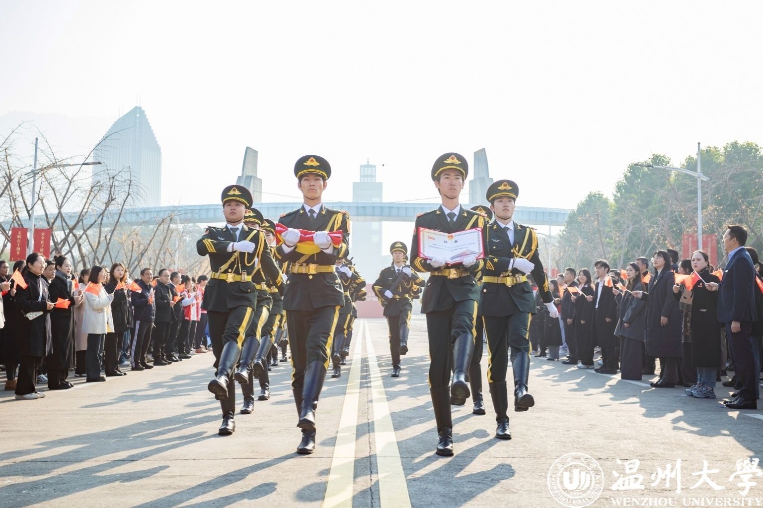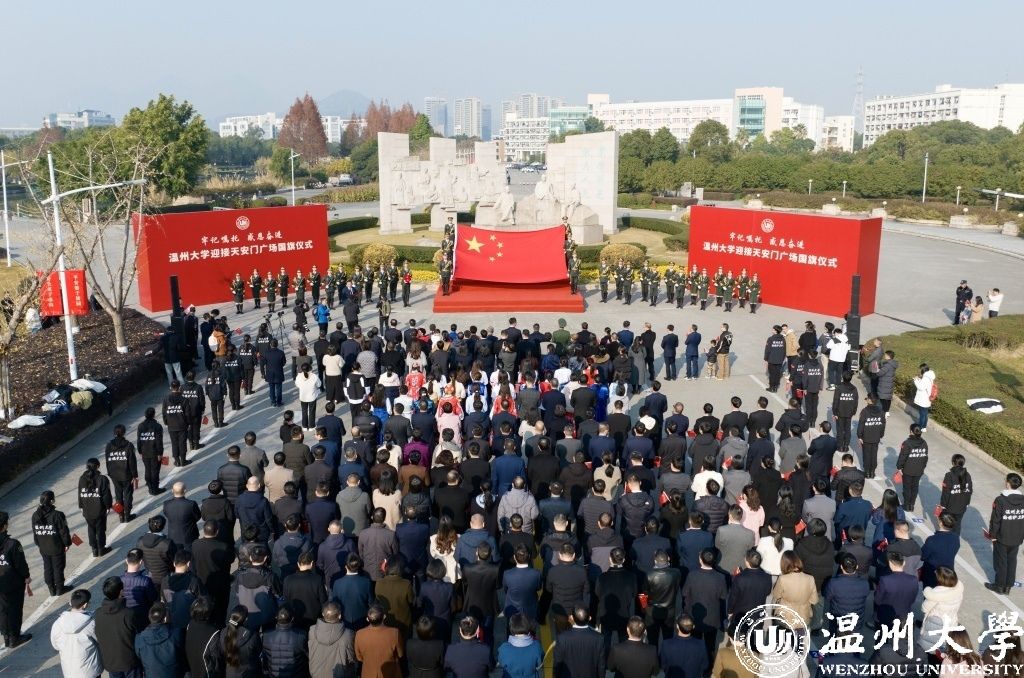 “我们是民族复兴伟业的追梦人,青春向党、乘风破浪……”新年第一天,beat365官方网站举行迎接天安门广场国旗仪式。一面于2023年5月19日beat365官方网站办学90周年校庆日在天安门广场升起的国旗,跨越1500多公里,从天安门来到beat365官方网站,这也是温大获赠的天安门广场国旗首次公开展示。学校以此为契机,开设了一堂特殊的国旗思政课,广场上,千余名师生共同宣誓,喊出国旗下的铮铮誓言。