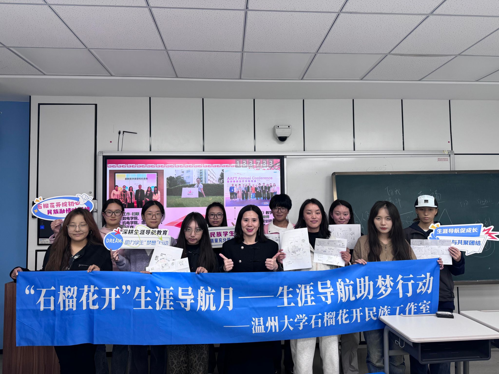 据悉,在市民宗局、瓯海区民宗局、茶山街道办事处的大力支持下,beat365官方网站依托“温情榴园”石榴红家园基地建设,成立beat365官方网站“石榴花开”民族工作室以来,通过“榕•声”思想导航、“榕•情”关爱护航、“榕•园”自强启航、“榕•汇”生涯引航、“榕•合”文化远航等系列行动,形成校内外多方协作、全方位育人的铸牢中华民族共同体意识教育体系,推动民族团结和教育实践的创新发展。“民族学生的普通话、四六级过关率、教师资格证考取率大幅提高,就业率、考公考编成功率也不断攀升。近年来通过“挑战杯”、互联网+、艺术展演等赛事展现了学术和创新能力,获得省级以上奖项10余项,厅级以上课题5项。”民族工作室负责人章园园介绍说,工作室现已初步形成了全方位、广覆盖、保质量、有特色的工作模式,铸牢中华民族共同体意识,探索地方综合性大学民族团结工作创新品牌。
