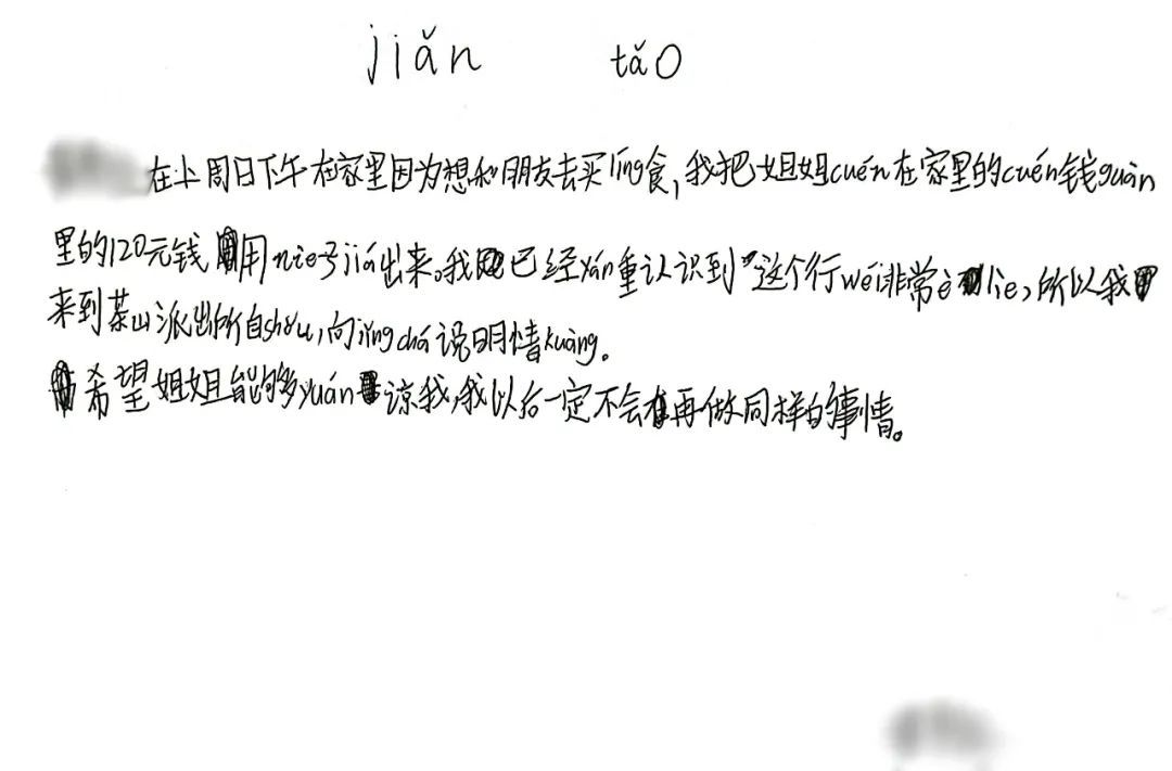 小男孩忐忑地说,他叫小王(化名),今年12岁,因为想吃零食并且希望能给一些给小伙伴,就趁着假期悄悄用镊子从姐姐的存钱罐里夹出120元,他做这一切既没得到姐姐的同意也没跟爸妈说过。