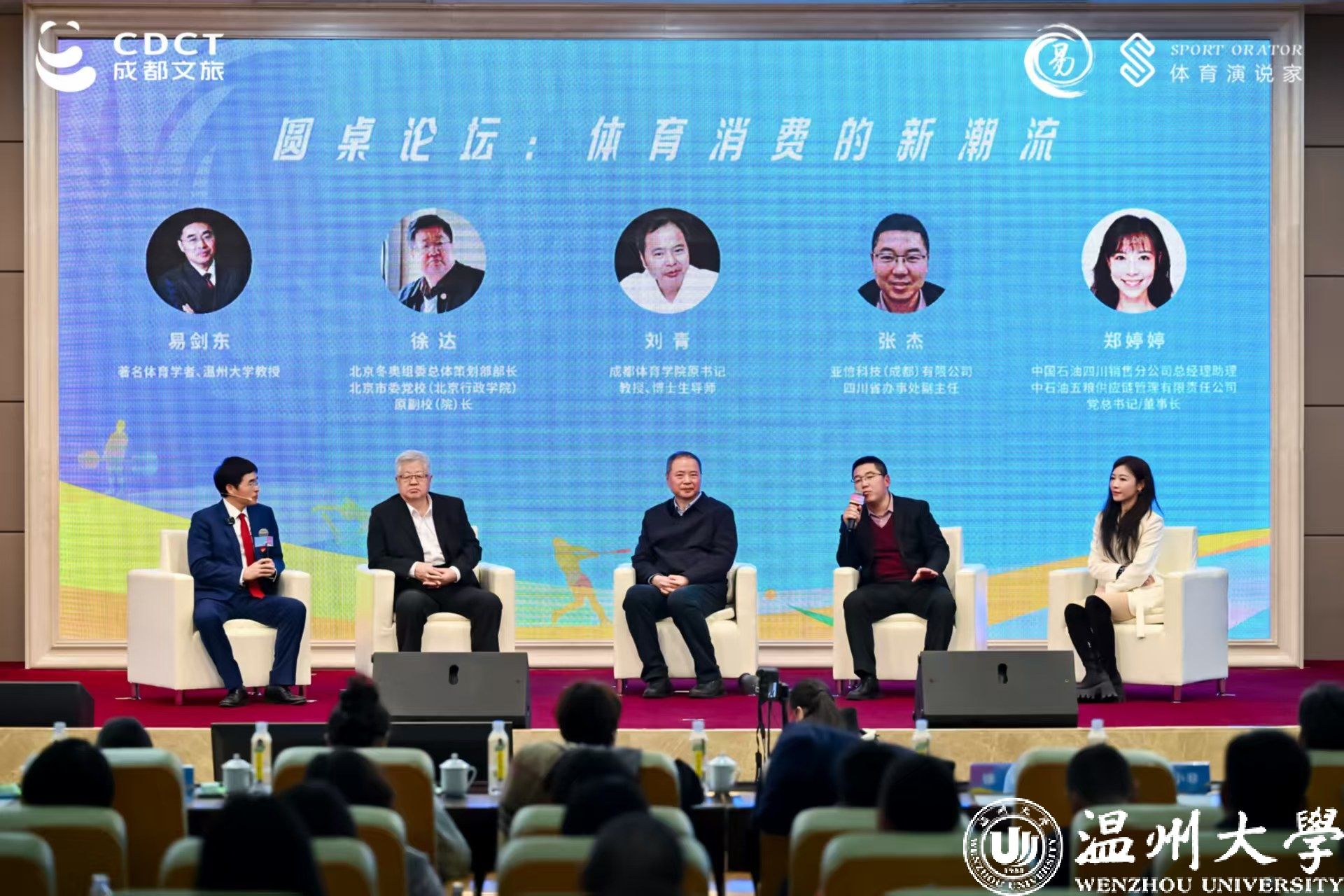 易剑东教授的跨年演讲,为成都乃至全国的体育爱好者、从业者提供了一个深入交流、共同探讨的平台。在今天的演讲现场,还举行了一场以体育消费的新潮流为主题的圆桌论坛,北京冬奥组委总体策划部部长、北京市委党校(北京行政学院)原副校(院)长徐达,成都体育学院原书记、教授、博士生导师刘青,亚信科技(成都)有限公司四川省办事处副主任张杰,中国石油四川销售分公司总经理助理、中石油五粮供应链管理有限责任公司党支总书记/董事长郑婷婷等行业精英汇聚,共同探讨体育消费市场的新趋势、新机遇,为更好促进成都体育事业发展展开了一场“头脑风暴”。