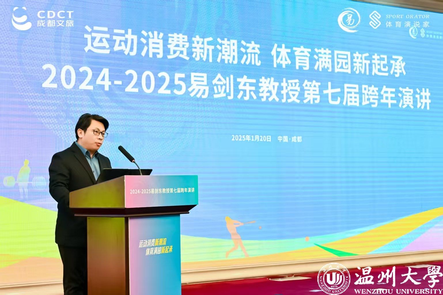 法制晨报成都电(杨俊报道)中国体育如何与世界共舞?1月20日,“易剑东教授第七届跨年演讲”在成都天府国际金融中心精彩开启,这是成都首次举办体育学术跨年演讲活动。易剑东教授以“中国体育如何与世界共舞”为主题,从全球视野出发,深度剖析中国体育如何把握机遇,应对挑战,实现与国际体育的深度融合,与世界同频共振。同时,探讨了体育消费市场的新趋势、新机遇,传递体育与产业相互赋能的理念,营造全城迎世运的良好氛围,为听众呈现了一场交融与碰撞的体育思想盛宴。