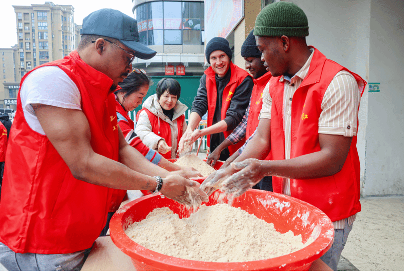 23日,留学生们走进梅泉社区,参与创建友好社区迎新春活动。活动现场,留学生们热情高涨,积极参与捣年糕、写春联、制作百鸟灯等传统民俗活动。在社区居民的指导下,他们亲手体验传统技艺,将对新春的美好期许融入其中。