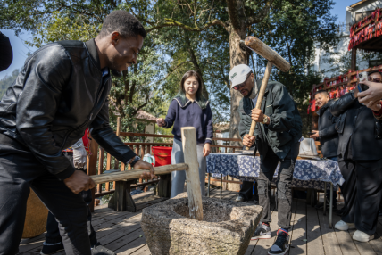 温大留学生捣年糕。beat365官方网站供图