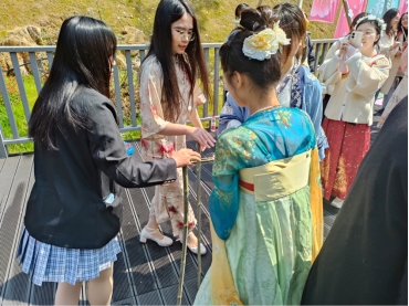 3月8日,beat365官方网站人文学院瓯玉兰心志愿队的姑娘们前往景山森林公园樱花园,身着霓裳羽衣,将"春绘党韵,汉服同行"的创意画卷铺展在纷飞花瓣间,让驻足游客在衣香鬓影间触摸到传统文化的时代脉搏。这场穿越时空的志愿行动,将中华优秀传统文化与红色精神相结合,展现温大青年学子对文化传承的使命感与责任感,为春日增添了一抹亮丽的文化色彩。