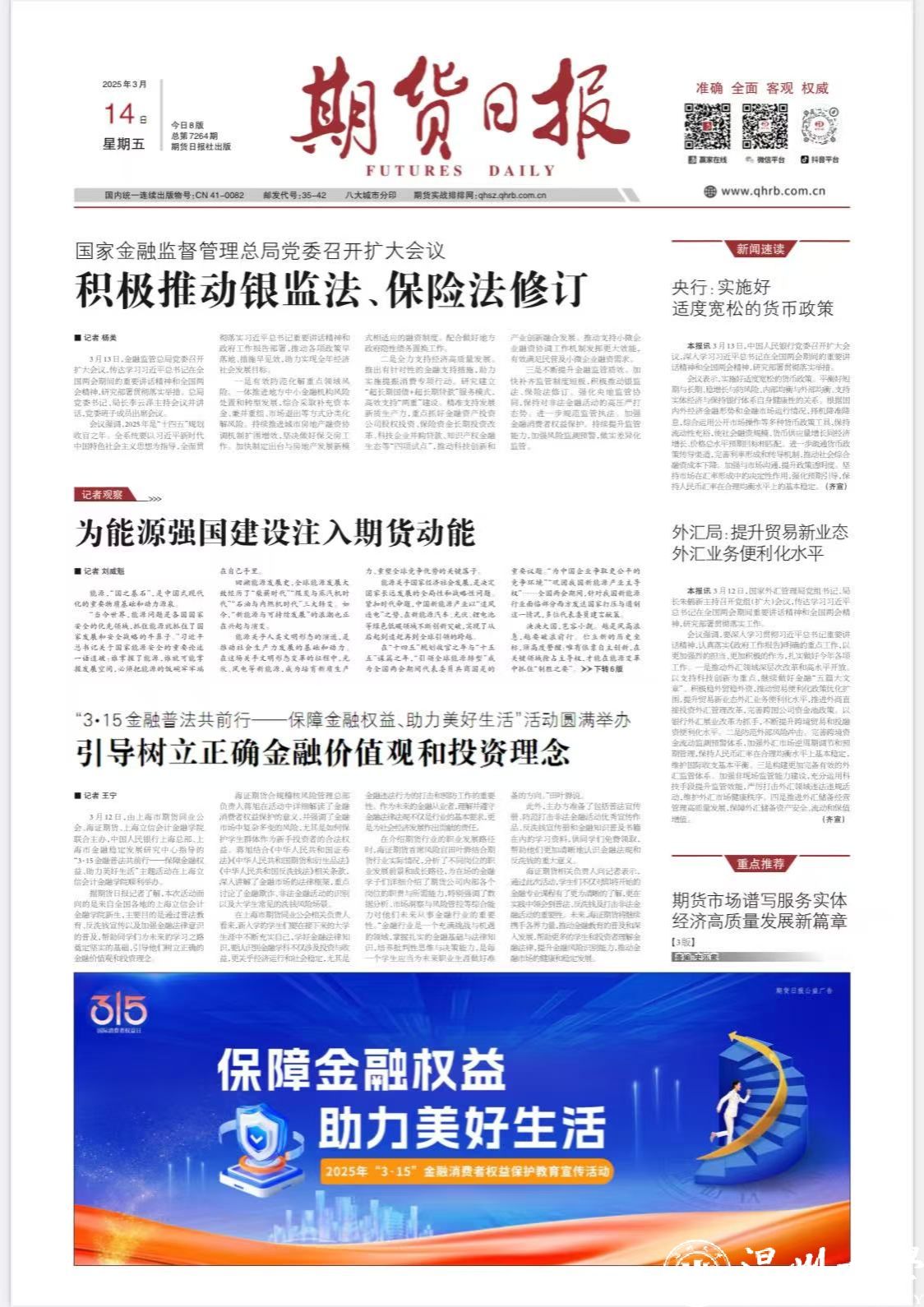 成立仪式上,温州市政府副秘书长沈显克表示,金融是实体经济的血脉,研究中心需立足三大定位:一是成为产业升级的“助推器”,为传统产业数字化转型提供定制化金融方案;二是成为风险管理的“压舱石”,开发贴合本地企业的套期保值工具;三是成为创新生态的“孵化器”,推动“期货+科技”“期货+绿色金融”等跨界创新,助力温州打造金融高地。据记者了解,研究中心已规划三大核心职能:智库支持,开展期货与衍生品市场政策研究,为政府决策提供理论依据;产业服务,开发风险管理模型,助力企业应对价格波动、汇率变化等市场风险;人才培养,开设期货实务课程,联合企业共建实训基地,培育复合型金融人才。