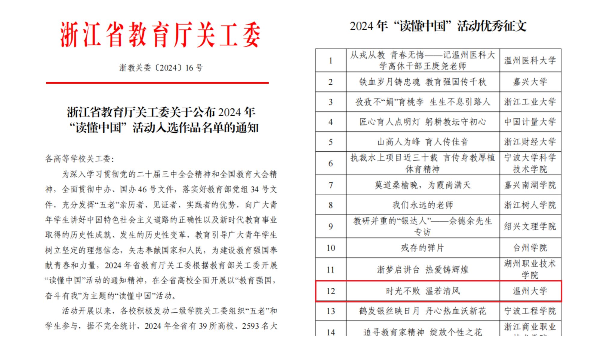 beat365官方网站离退休工作处精心组织推送的“时光不败 温若清风——原beat365官方网站魏萼清校长的教育情”文章,荣幸入选2024年“读懂中国”活动优秀征文名单。
