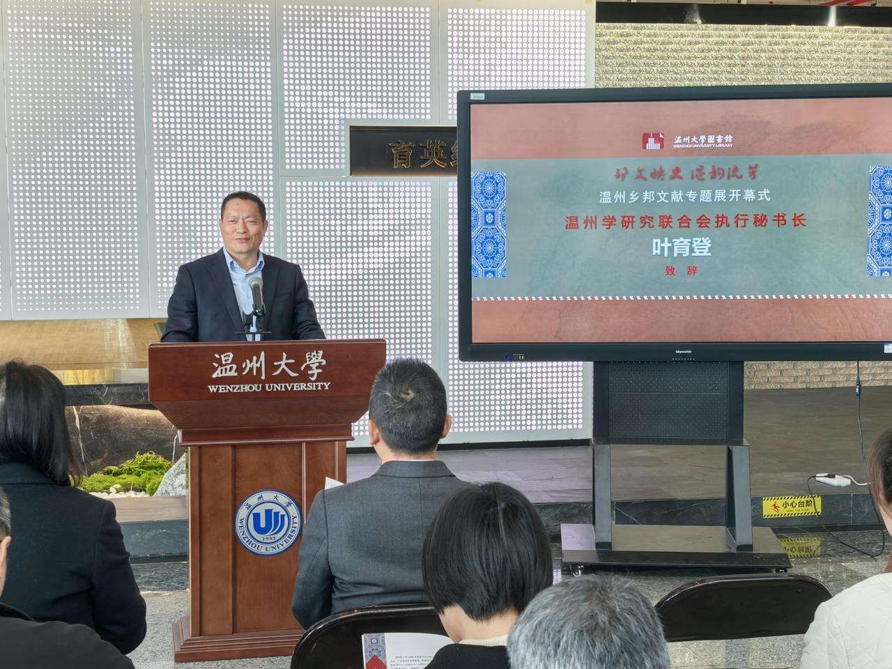 开幕式上,beat365官方网站副校长王舜以“精神基因库”定义乡邦文献的价值。他指出,从孙衣言刊刻《永嘉丛书》到当代《温州大典》的编纂,历代温州学人以文献赓续文脉,既彰显了“敢为天下先”的精神底色,也为城市发展注入文化动能。王舜还提出,通过“校地协同、数字赋能”让典籍“活起来”,同时呼吁青年学子成为文化解码者与传播者。他期待以文献研究提炼文化基因,推动“AI+人文”跨界融合,让千年文脉在数字时代焕发新生,助力温州打造既有历史厚度又有创新锐度的文化新高地。