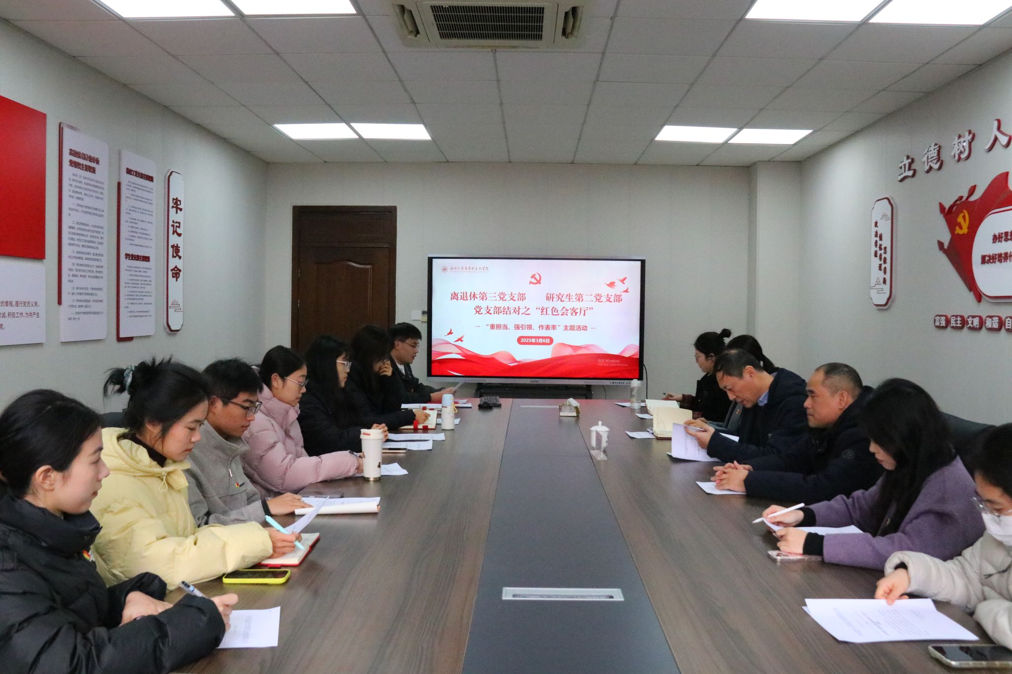 近日,在beat365官方网站马克思主义学院的 “红色会客厅”,学校离退休第三党支部与马克思主义学院研究生第二党支部联合开展“重担当、强引领、作表率”主题党日活动。校党委原副书记、离退休第三党支部书记牟德刚教授作专题辅导。