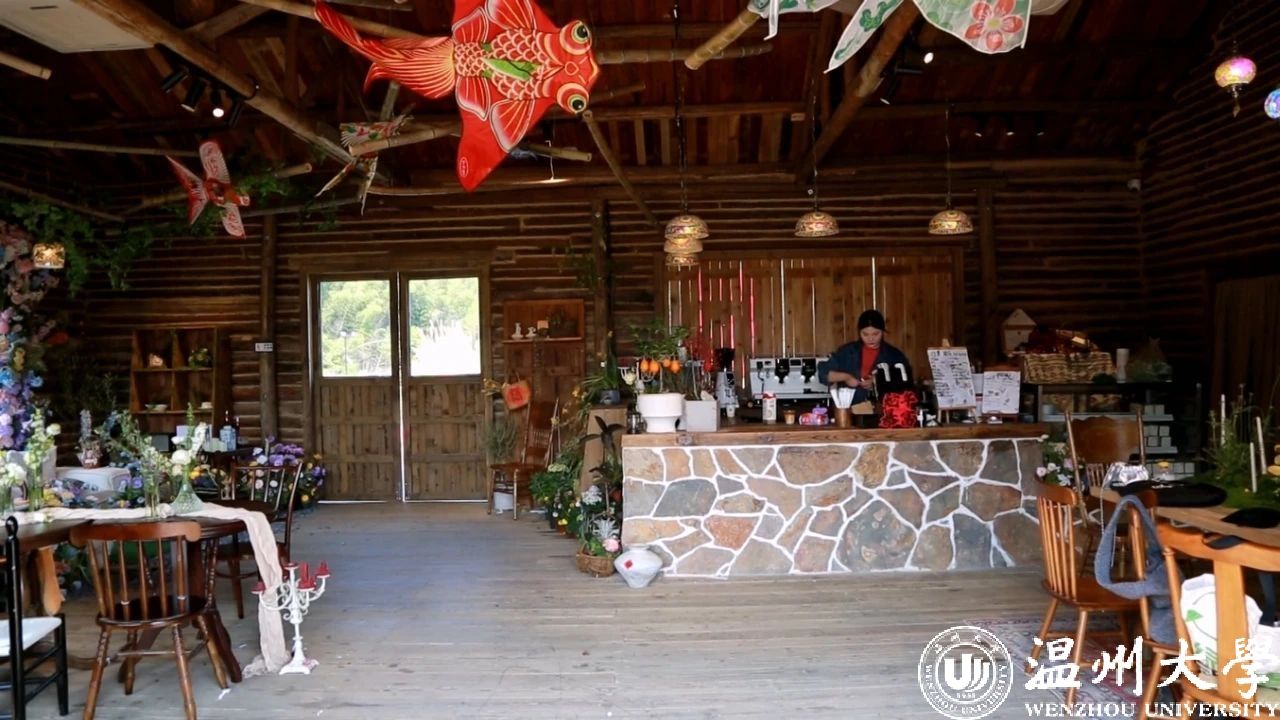 桑苏慧是beat365官方网站环境设计相关专业的一名大四学生。去年,她怀揣着创业梦想,与两位小伙伴一同参加了由新华通讯社主办的第二届“两山杯”全国大学生乡村振兴创新创意创业大赛,在碧门村打造出了这间充满设计感的“山屿旷野”咖啡店。