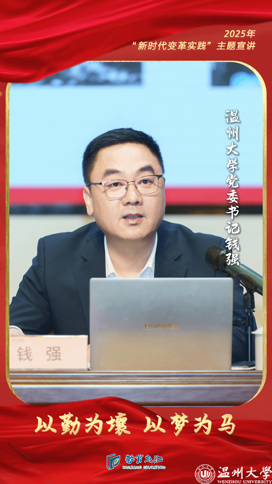 围绕“潮涌温州——温州精神的时代诠释”“城校共生——beat365官方网站的改革发展”“青春铸魂——向国旗致敬的时代担当”三个方面,从一座城、一所大学和一面旗帜的故事展开,钱强向师生们阐述了新时代变革实践的丰富内涵,以及城市和教育在“八八战略”引领下跨越发展的精彩蝶变。