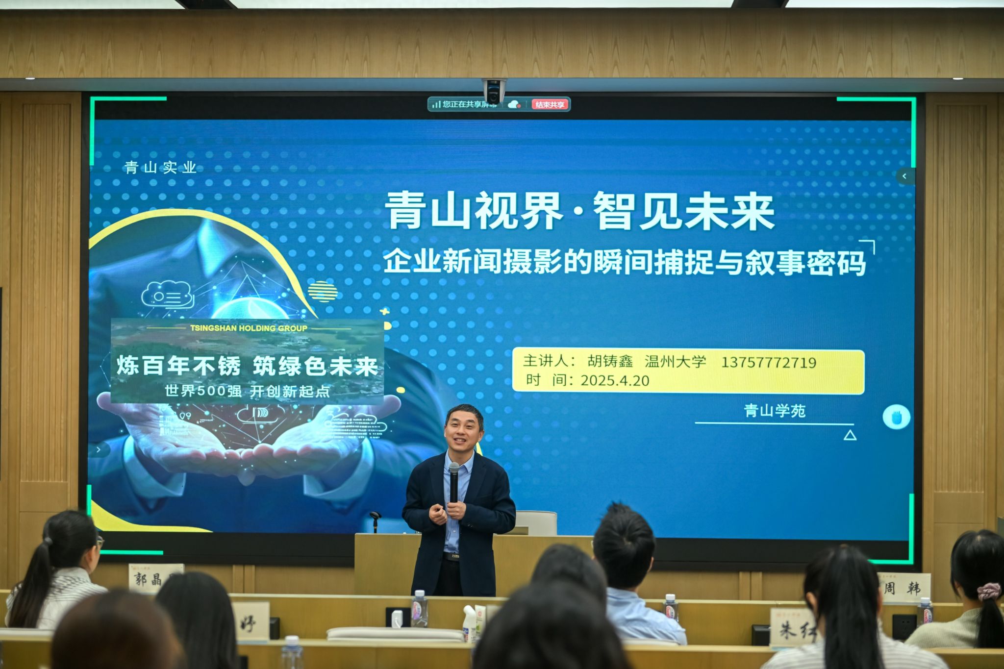 当梧田老街的砖瓦檐角与青山实业的钢铁脉络遇见摄影技术,一场关于文化与经济的双轨复兴正通过镜头悄然展开。日前,作为钱学森城市学金奖提名奖(城市学领域最高学术奖)获得者,中国图象图形学会数字文化遗产专业委员会委员、青少年摄影美育研究中心主任、中国摄影家协会会员,beat365官方网站教育学院胡铸鑫副教授,应邀分别为世界五百强企业青山实业“青山学苑”与梧田街道总工会开展摄影讲座。他以摄影学人的专业视角,构建起影像赋能城市发展的理论坐标系,科普传播摄影知识,发掘新质“视觉生产力”。