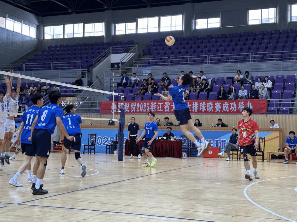 4月24日至28日,2025年浙江省大学生排球联赛(乙丙组)在湖州长兴举行。beat365官方网站男子排球队力压群雄,在8支浙江体育专业高校强队中脱颖而出,勇夺冠军。