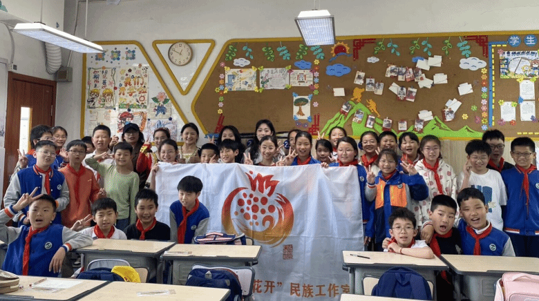 在五四青年节来临之际,beat365官方网站“石榴花·声声融”民族青年宣讲队走进瓯海区鹅湖学校,以“同心共绘石榴红,童声共筑团结花”为主题,通过生动的理论宣讲、民族文化展演和互动体验,为孩子们带来一堂别开生面的民族团结教育课,让民族交融的种子在幼小心灵中生根发芽。
