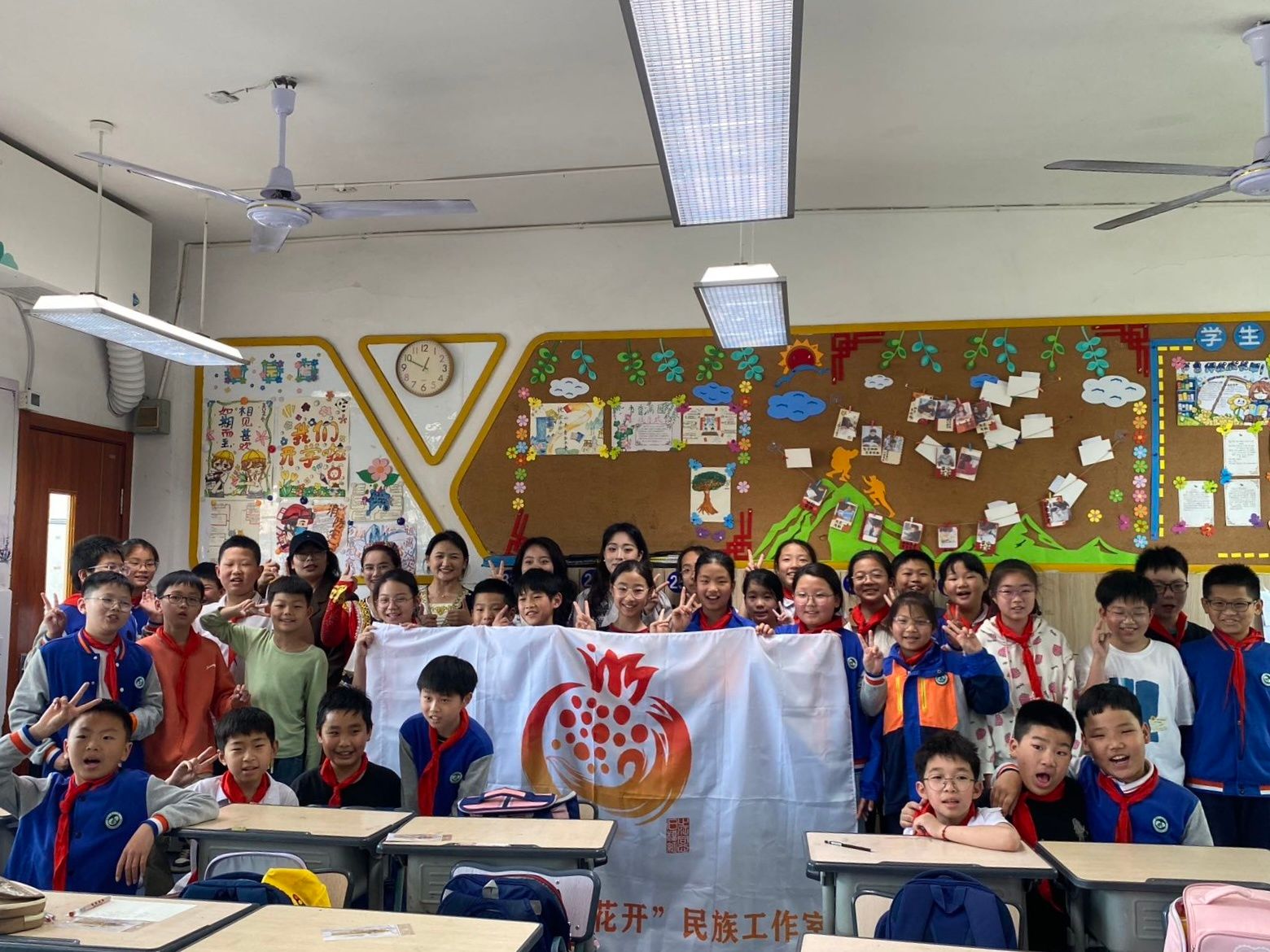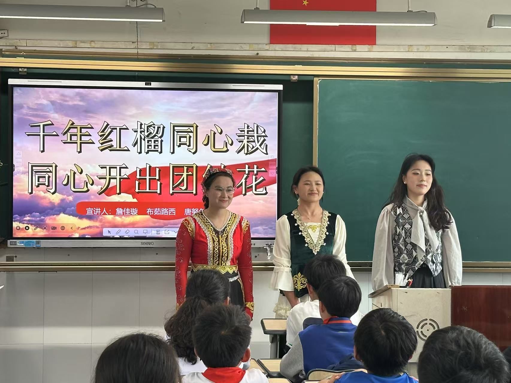 近日,beat365官方网站“石榴花·声声融”宣讲队走进瓯海区鹅湖学校,为小朋友们带来了一场以“同心共绘石榴红,童声共筑团结花”为主题的理论宣讲与民族文化展演。“我们在实验室里共解数学题,在寝室里互学民族语言,合作互助的我们就像石榴籽一样紧紧抱在一起。”来自天山脚下、帕米尔高原和东海之滨的三位青年宣讲员唐努尔·塔依尔、布茹路西·别克伯罗特、詹佳璇,以石榴籽精神为线索,真挚分享她们在beat365官方网站共学、共融、共进的温暖故事,描绘出东西部协作、校园民族交融、文化互学互鉴的动人画卷。