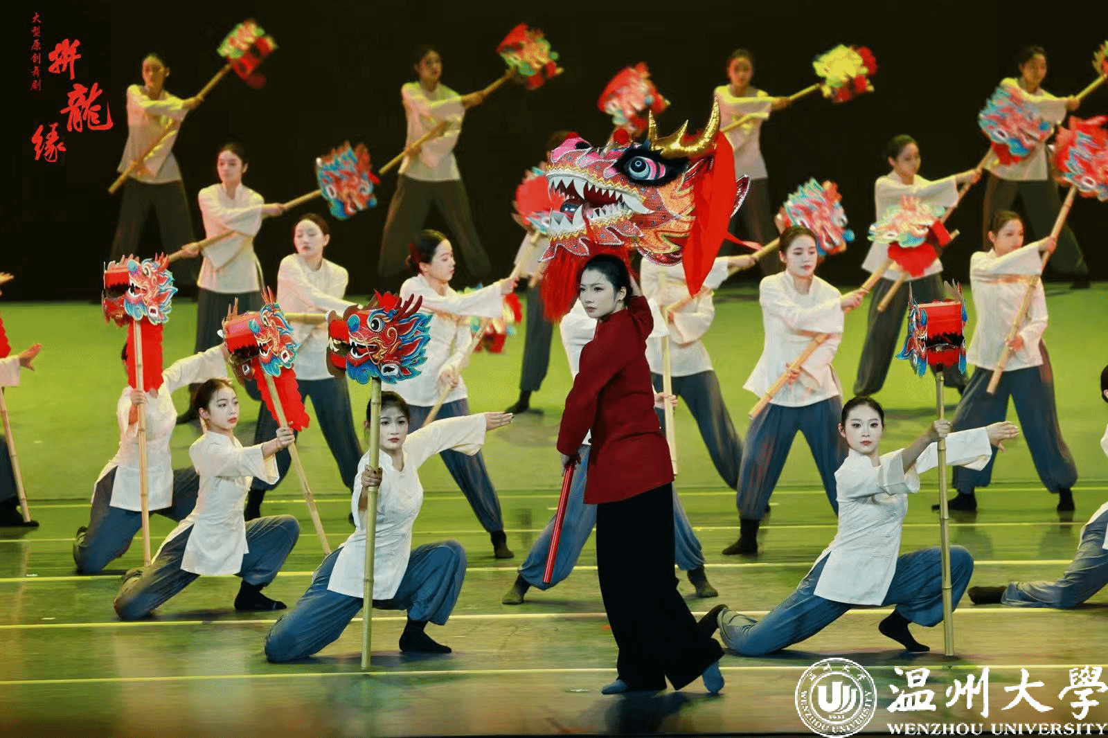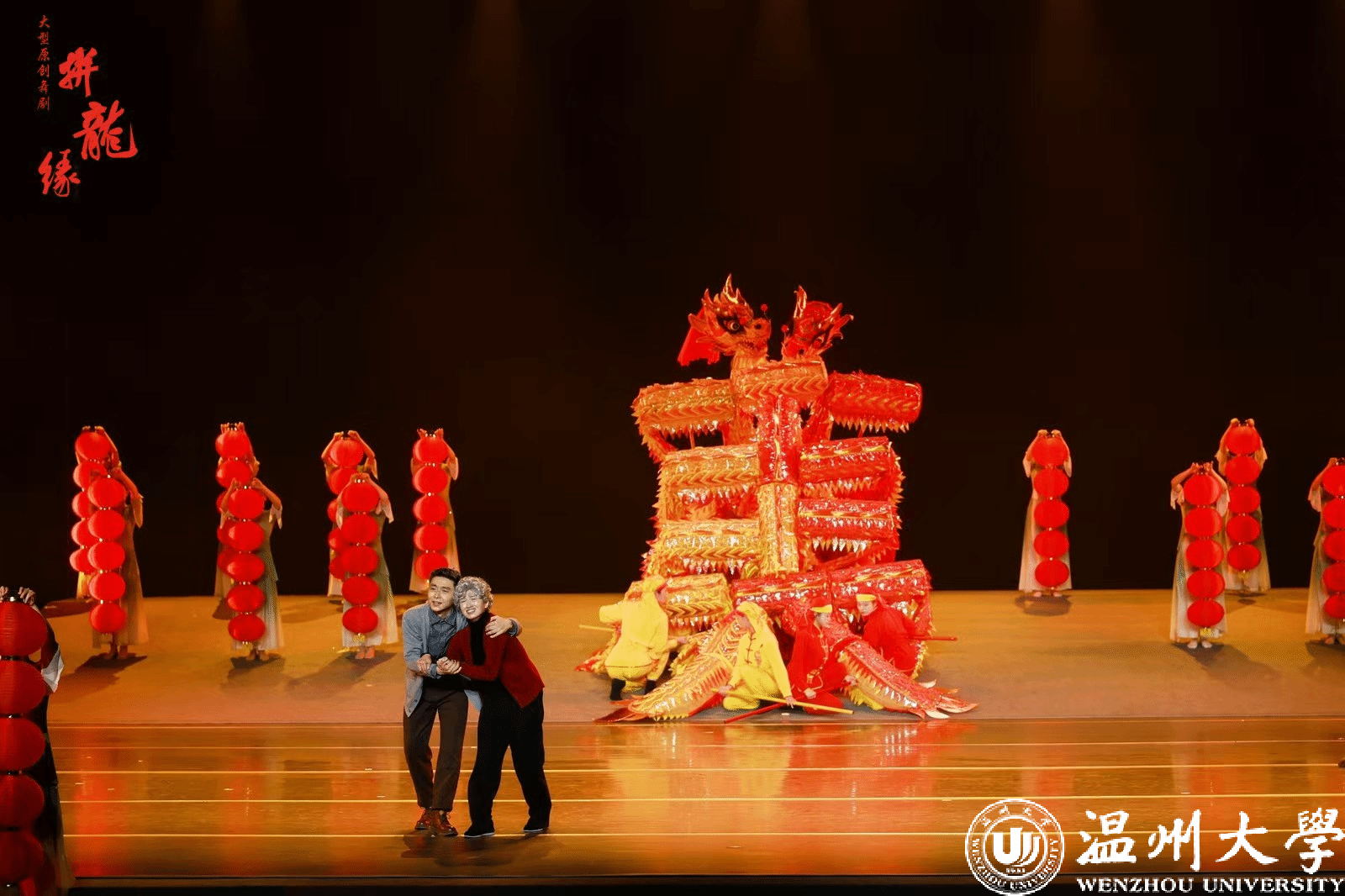 5月15日晚上,由龙湾区委宣传部、龙湾区文联与beat365官方网站音乐学院联合打造的温州首部以非遗文化为题材的原创舞剧《拼龙缘》在beat365官方网站育英大礼堂正式首演。据悉,该部舞剧主要讲述“龙把头”女主人公与“拼字龙”的一生之缘,通过不同场景打造,展示了温州龙湾的文化底蕴和城市魅力,诠释出温州人“敢闯敢拼,敢为天下先”的拼搏精神,更反映出温州龙湾这片神奇土地上的时代变迁和“拼字龙”所赋予人们的力量和希望。
