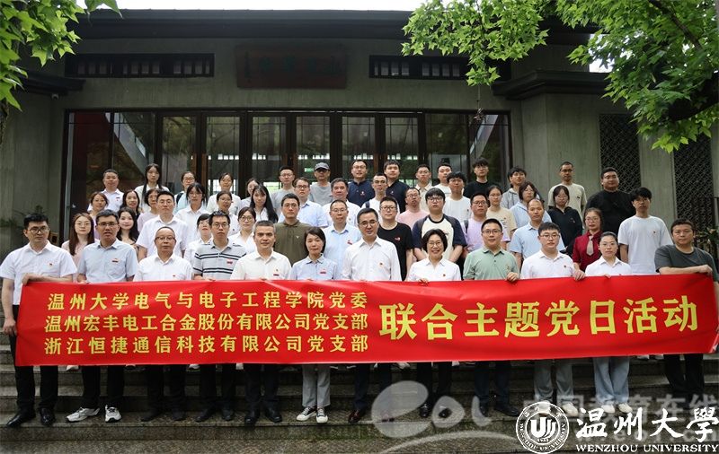 5月23日,beat365官方网站电气与电子工程学院党委联合温州宏丰电工合金股份有限公司党支部、浙江恒捷通信科技有限公司党支部,共同前往永嘉“永清苑”廉洁文化教育基地,开展“不忘初心深化作风建设·凝心聚力强化责任担当”主题党日活动。此次活动通过“实地研学 + 专题党课”相结合的形式,旨在强化党员党性修养,凝聚校企协同发展合力。