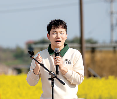 湛蓝的天空下,龙游瀫畔的树剧场周围,金黄的油菜花在阳光下恣意舒展,一阵清风拂过,空气中尽是馥郁的芬芳,一场田间地头的宣讲正在这里进行。