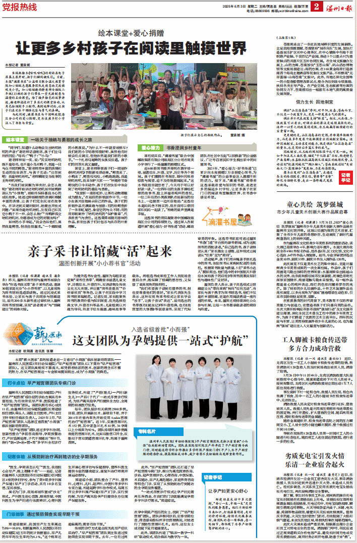 2025年,“爱心接力·好书传递”已累计向温州日报捐赠2万余册爱心图书,为“滴灌书屋”的公益事业注入源源不断的活力。接下来,“滴灌书屋”将带着这些承载着爱与知识的书籍,走进更多偏远乡村学校,让更多孩子在家门口的阅读角里触摸世界,在书香中感受希望。