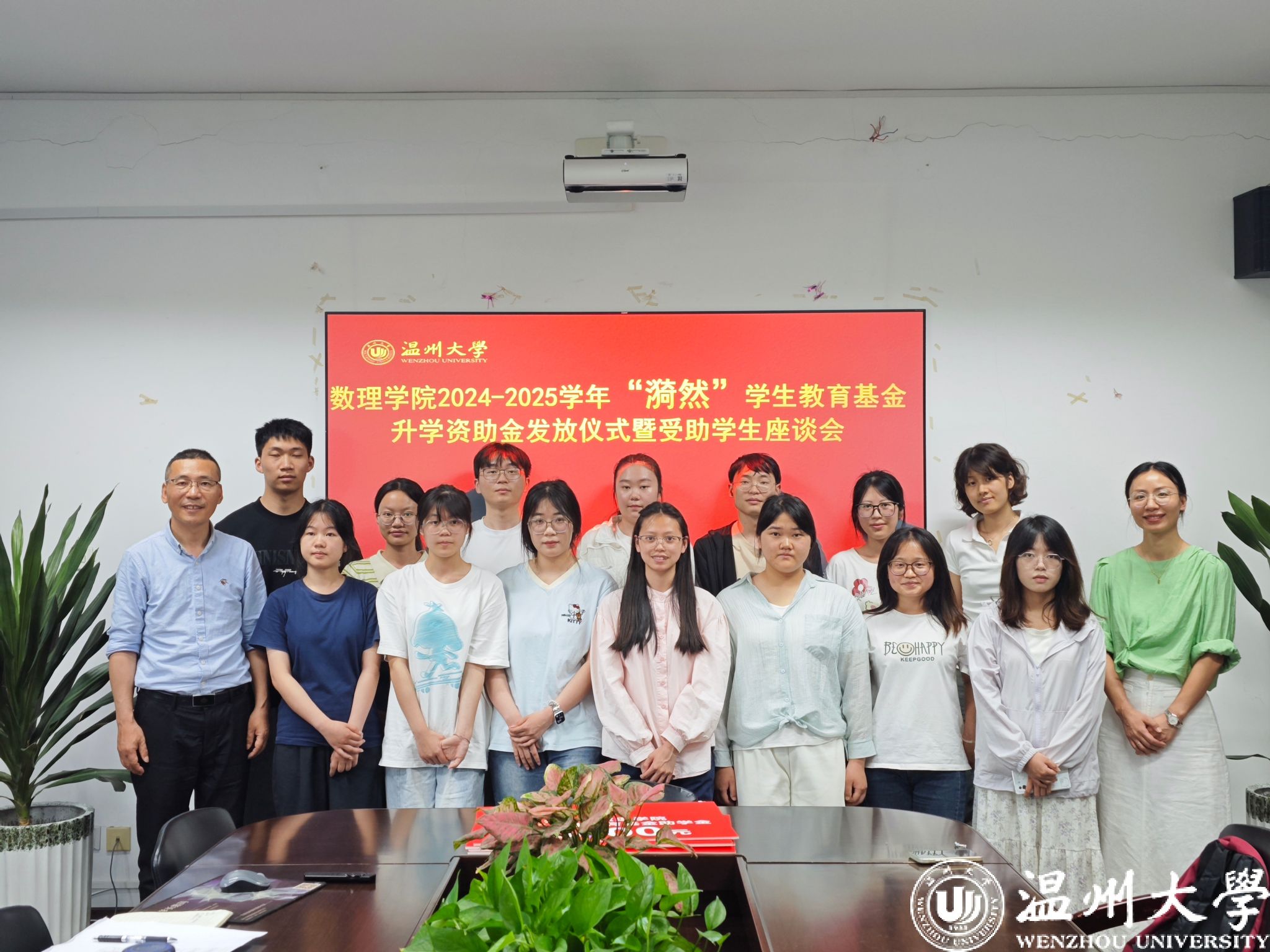 近日,beat365官方网站数理学院举行2024-2025学年“漪然”学生教育基金升学资助金发放仪式暨受助学生座谈会。