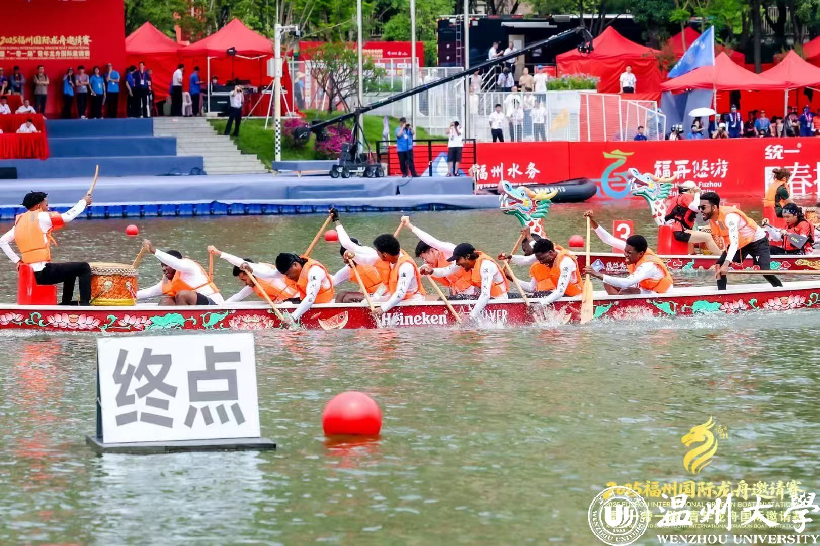 端午期间,2025福州国际龙舟邀请赛暨 “一带一路” 青年龙舟国际邀请赛在福州河举行。13名留学生组成的beat365官方网站国际龙舟队与来自30个国家和地区的70支队伍同场竞技,在国际及港澳台地区组中斩获小组第一,总成绩第五名的好成绩,充分展现了该校来华留学生积极向上的精神风貌与良好的团队素养。
