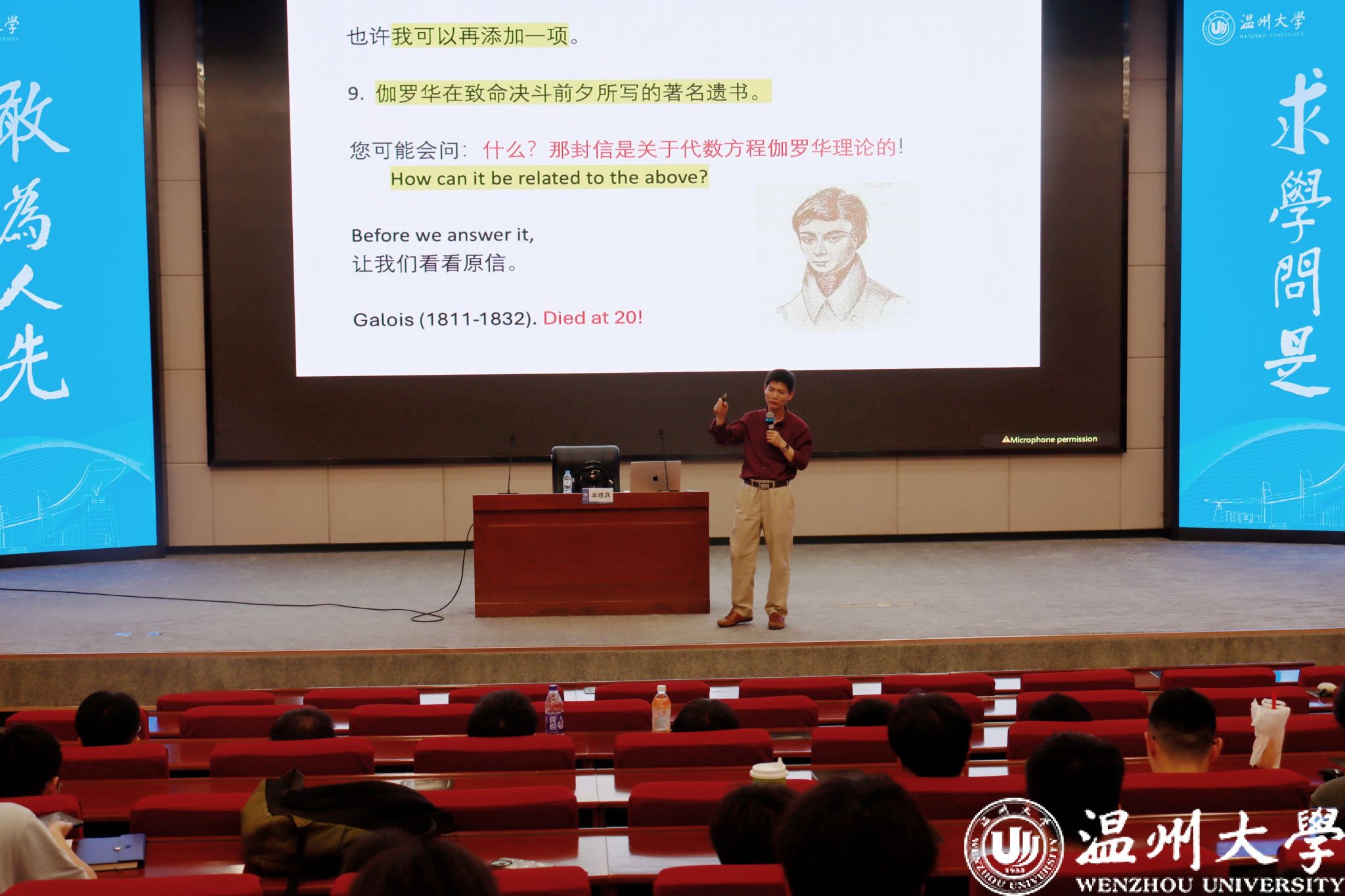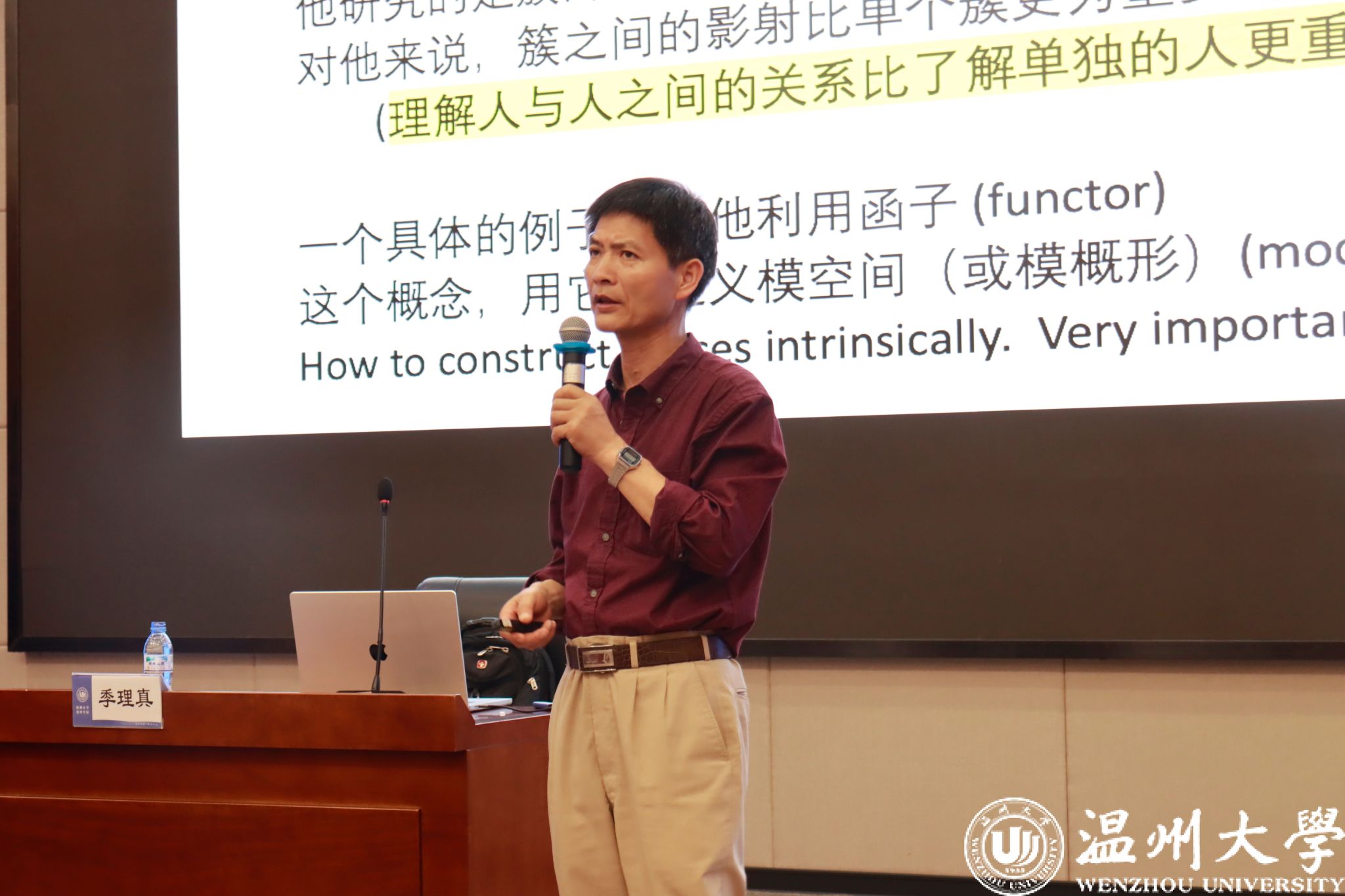 6月3日,著名温籍数学家、美国密歇根大学教授季理真受邀到访beat365官方网站数理学院,指导“数学家之乡”人才培养建设,做客罗山讲堂,在beat365官方网站育英图书馆二楼报告厅为师生带来题为《单值化定理:它的历史、明及持久影响》的学术讲座。作为“数学家之乡”温州的杰出代表,季理真教授以深厚的学术积淀和独到见解,为师生们呈现了一场数学史与现代数学交融的思想盛宴。