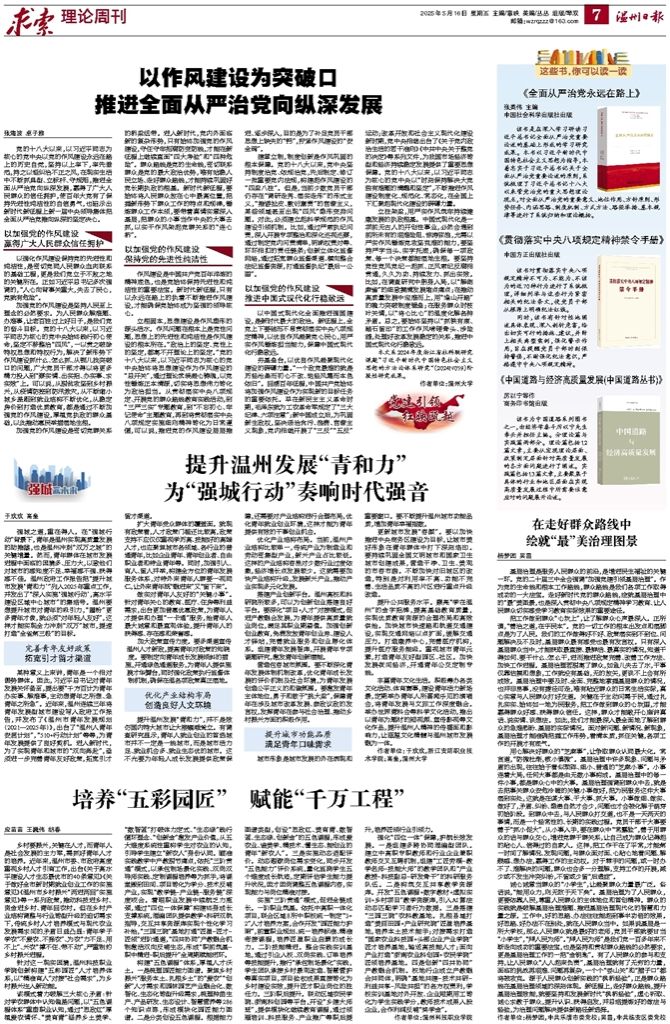 夯基垒台,以优良作风凝聚现代化建设的磅礴力量。“一个政党最难的就是历经沧桑而初心不改、饱经风霜而本色依旧”。回溯百年征程,中国共产党始终将加强作风建设作为实现新的目标任务的重要依托。早在新民主主义革命时期,毛泽东就为工农革命军规定了“三大纪律、六项注意”;新中国成立后,为巩固新生政权,坚决惩治贪污、浪费、官僚主义现象,党内相继开展了“三反”“五反”运动;改革开放和社会主义现代化建设新时期,党中央相继出台了《关于党内政治生活的若干准则》《中共中央关于整党的决定》等系列文件,为我国市场经济转型和经济持续稳定发展提供了重要思想保障。党的十八大以来,以习近平同志为核心的党中央以“时刻保持解决大党独有难题的清醒和坚定”,不断推进作风建设制度化、规范化、常态化,在全国上下汇聚起现代化建设的磅礴力量。