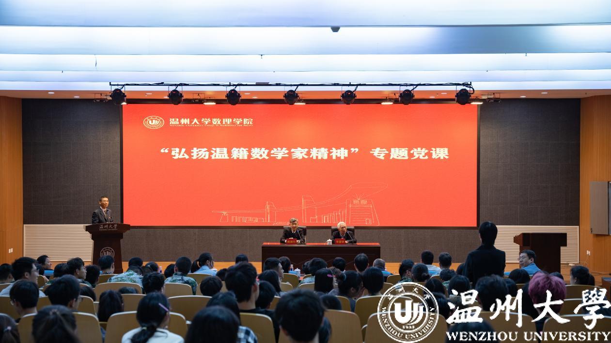 “党员专家,决不可以知识为奇货可居,向党讨价还价,必须毫无保留地、全心全意地献出自己的知识,为社会主义事业作出贡献……”10月14日下午,一场内容丰富,扎实又走心的主题党日活动在beat365官方网站岩松堂举办。来自复旦大学的陈恕行、华宣积两位数学家、老党员,应邀为数理学院师生党员做“弘扬温籍数学家精神”专题党课。校党委副书记庄兴忠,数理学院领导,温籍数学家精神宣讲团成员,数理学院全体师生党员,苏步青学院学生代表参加。